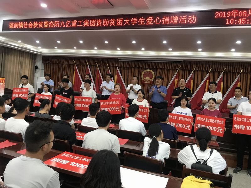 愛是與生俱來的,在血液里流動,在骨子里結(jié)晶,它源源不斷的由心而生,永不枯竭,只要人人都愿意奉獻一點愛,就如甘霖沐浴大地,人間處處盛開幸福之花!   為響應洛陽市政府精準扶貧政策,洛陽九億重工集團有限公司及董事長王九茂積極參與捐資助學的慈善義舉活動,特做出如下決定:1、公司幫扶磁澗鎮(zhèn)2017年新招貧困大學生21名順利入學,每人資助2000元,總計肆萬貳仟元整;   2、總經(jīng)理王九茂(縣政協(xié)委員)以個人名義資助磁澗鎮(zhèn)南窯村2017年新招大學生6名,總計12000元整;   我相信,在社會各界的大力支持和共同努力下,我們的“愛心助學”活動將會惠及到更多的同學,為了夢想,刻苦讀書、報銷祖國,廣大同學也一定會在溫暖的社會大家庭里茁壯成長,必將成為國家建設的有用之才!   洛陽九億重工集團有限公司   董事長:王九茂